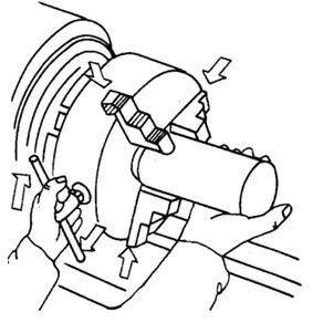 2.用三爪自定心卡盘安装工件(伸出约100mm)。